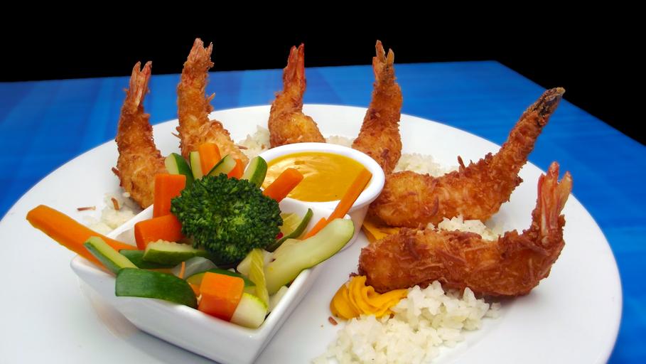 Keywords: shrimp appetizer seafood delicious crustacean breaded food sauce