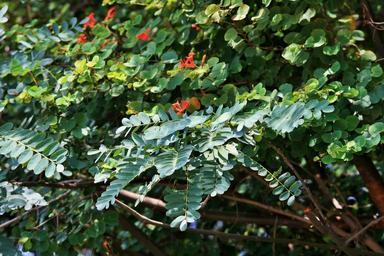 Keywords: shrub and tree foliage leaves green flowers orange dense