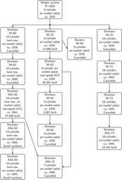 Keywords: Shvetsov family tree.svg LaTeX source code 300px <syntaxhighlight lang latex> \documentclass10pt border 1pt crop multi false tikz class scrartcl standalone \usepackageT1 fontenc \usepackageutf8 inputenc \usepackage lmodern \usepackage setspace \usetikzlibrary calc positioning arrows \renewcommand \familydefault \sfdefault \renewcommand \printatom1 \ensuremath \mathsf 1 \tikzset vbox/ style draw rectangle rounded corners text centered black text width 7 5em \makeatother \begin document \begin tikzpicture node distance 3 75cm thick > stealth' \node a1 vbox Wright cyclone\\ R--1820\\9-cylinder air-cooled radial \\ca \ 1931 ; \node b2 vbox below 1 2cm of a1 Shvetsov\\ M--25\\ 9-cylinder air-cooled radial \\ca \ 1934 13 888 built ; \node b1 vbox left 1 5cm of b2 Shvetsov\\ M--80\\ 14-cylinder twin-row air-cooled radial \\ca \ 1939 Cancelled ; \node b3 vbox at b2 + 3 5cm -1cm Bazarov\\ M--65\\ 9-cylinder air-cooled radial \\ca \ 1939 Cancelled ; \node b4 vbox at b2 + 7cm 0 Shvetsov\\ M--70\\ 18-cylinder air-cooled radial \\ ca \ 1938 Cancelled ; \node c1 vbox below of b1 Shvetsov\\ M--81\\ 14-cylinder twin-row air-cooled radial \\ca \ 1940 Cancelled ; \node c2 vbox below of b2 Shvetsov\\ M--62\\ 9-cylinder air-cooled radial two-speed GCS\\ca \ 1939 40 361 built ; \node c4 vbox below of b4 Shvetsov\\ M--71\\ 18-cylinder air-cooled radial \\ ca \ 1942 Cancelled ; \node d1 vbox below of c1 Shvetsov\\ ASh--82\\ 14-cylinder twin-row air-cooled radial two-speed GCS \\ca \ 1941 57 898 built ; \node d2 vbox below of c2 Shvetsov\\ M--63\\ 9-cylinder air-cooled radial\\ca \ 1939 3 087 built ; \node d4 vbox below of c4 Shvetsov\\ M--72\\ 18-cylinder air-cooled radial \\ ca \ 1945 Cancelled ; \node e1 vbox below of d1 Shvetsov\\ ASh--83\\ 14-cylinder twin-row air-cooled radial \\ca \ 1945 Small numbers ; \node e2 vbox below of d2 Shvetsov\\ M--64\\ 9-cylinder air-cooled radial\\ca \ 1939 Cancelled ; \node e4 vbox below 1 5cm of d4 Shvetsov\\ ASh--73\\ 18-cylinder air-cooled radial \\ ca \ 1945 14 310 built ; \node f1 vbox below of e1 Shvetsov\\ ASh--84\\ 14-cylinder twin-row air-cooled radial \\ca \ 1945 Small numbers ; \node f2 vbox below of e2 Shvetsov\\ ASh--21\\ 7-cylinder air-cooled radial\\ca \ 1946 Cancelled ; \draw -stealth a1 -- b2 ; \fill a1 5 b2 circle radius 2pt; \draw -> a1 5 b2 - b1 ; \draw -> b2 0 -- b3 180 ; \draw -> a1 5 b2 - b4 ; \draw -> b1 -- c1 ; \draw -> b2 -- c2 ; \draw -> b4 -- c4 ; \draw -> c1 -- d1 ; \draw -> c2 -- d2 ; \draw -> c4 -- d4 ; \draw -> d1 -- e1 ; \draw -> d2 -- e2 ; \draw -> d4 -- e4 ; \draw -> e1 -- f1 ; \draw -> d1 south east -- f2 north west ; \draw -> c2 east -- + 1cm 0pt - f2 east ; \end tikzpicture \end document </syntaxhighlight> cob 2014-09-30 18 18 33 own Krishnavedala other versions validSVG cc-zero Uploaded with UploadWizard Shvetsov aircraft engines Images with LaTeX source code |