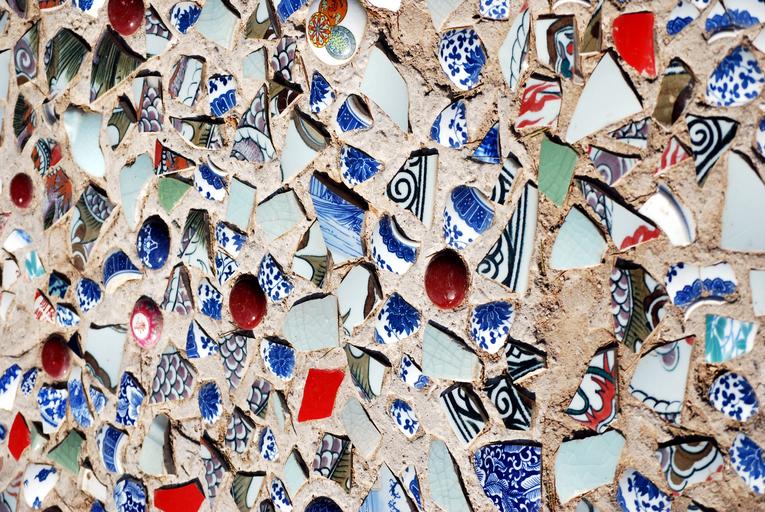 Keywords: sidewalk porcelain pottery chips decoration art artwork