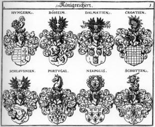 Keywords: Siebmacher 1701-1705 B001.jpg Siebmachers Wappenbuch Tafeln der 9 Ausgabe 1701 und der 10 Ausgabe 1705 nach dem Faksimile von 1975 Tafel aus Teil 2 http //www wappenbuch com/ between 1701 1705 Johann Siebmacher Rudolf Johann Helmer Paul Fürst und Mitarbeiter PD-old-100 Siebmachers Wappenbuch 1701/1705 Teil 2 Siebmacher - Koenigreiche |