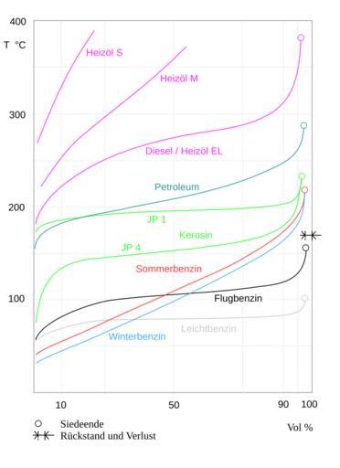 Keywords: Siedekurven white.svg Siedekurven von Kraftstoffen Bezeichnet die Temperatur zu der ein prozentualer Anteil eines Kohlenwasserstoffgemisches verdampft und wieder kondensiert Der prozentuale Rest der nicht verdampft und wieder kondensiert ist 'Rückstand und Verlust' de Datei Siedekurven svg Chris828 <span class signature-talk >talk</span> de Datei Siedekurven svg de German Wikipedia Chris828 Fuel gas |