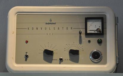| Keywords: Siemens Konvulsator 622.jpg Siemens Konvulsator 622 aus dem Psychiatrischen Landeskrankenhaus Schussenried; ausgestellt im Neuen Kloster Schussenried own own photograph Photo 2011 Photo User FA2010 Collections of Neues Kloster Schussenried Psychiatric treatments Siemens Healthcare Medical equipment |