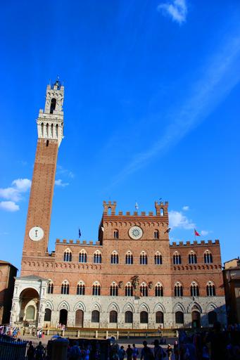 Keywords: siena tuscany italy torre palazzo architecture square of the field palio blue sky clouds