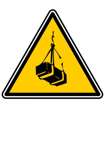 Keywords: sign heavy object lifting hazard snapping fall drop caution symbol crane rope industrial container loading