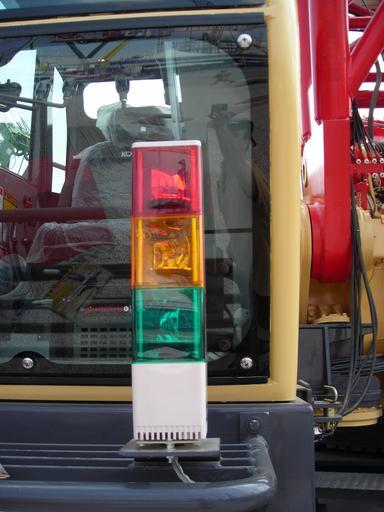 | Keywords: Signalsäule an einer grossen selbstfahrenden Baumaschine (rot gelb grün).jpg warning lights seen on a building machine at bauma fair Munich<br> signal lamp tower with cheval glass lights on a hydraulic excavator Signalturm / Signalsäule mit Drehspiegelleuchten an einem Hydraulikbagger zur visuellen Statusanzeige own 2007-04-29 User Mattes Warning signs Signalling lamps Bauma 2007 Taken with Nikon Coolpix L2 Work by Mattes 2007 Green red white yellow User Mattes/Contributions/Topics/Technology |
