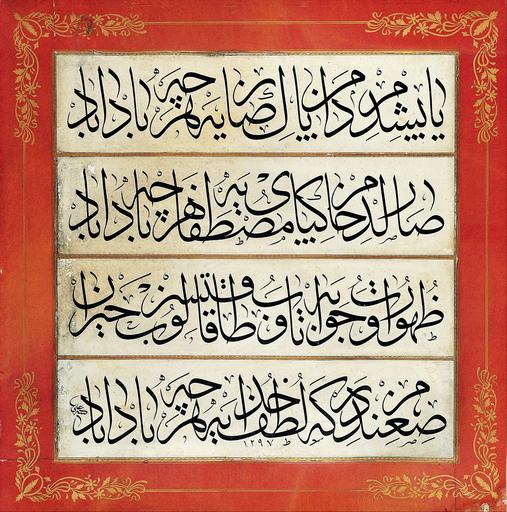 Keywords: Signed Çırçırlı Ali - Levha (calligraphic inscription) - Google Art Project.jpg Google Art Project 1902 Signed 592857 Çırçırlı Ali 1902 /collection/sakp-sabanc-museum/artwork/levha-calligraphic-inscription-signed-crcrl-ali/603038/ Signed Çırçırlı Ali /artist/crcrl-ali/4126487/ 4126487 /collection/sakp-sabanc-museum/ Sakıp Sabancı Museum 479109 http //muze sabanciuniv edu/ /collection/sakp-sabanc-museum/artwork/levha-calligraphic-inscription-signed-crcrl-ali/603038/ 1879 1879 500 603038 False 1879 130-0068-CA Sakıp Sabancı Museum Ink colours and gold on paper 1870 1880 w492 x h500 mm 1879 False 0 990234375 Sakıp Sabancı Museum Object levha-calligraphic-inscription-signed-crcrl-ali Levha calligraphic inscription l 492 PD-art PD-old-70 PD-US Original upload log page en wikipedia Signed+ C3 87 C4 B1r C3 A7 C4 B1rl C4 B1+Ali+-+Levha+ 28calligraphic+inscription 29+-+Google+Art+Project jpg wikitable - 2013-01-30 06 02 00 2671× 2697× Dcoetzee artist_bi - Uncategorized 2016 December 29 |