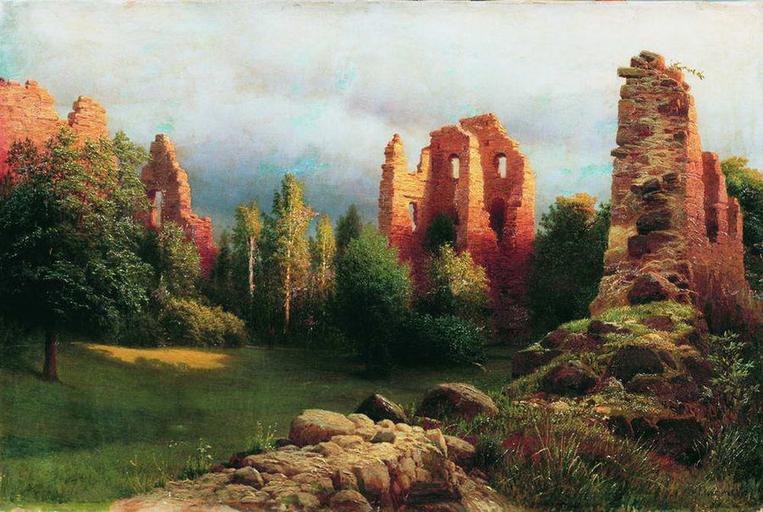 Keywords: Sigulda ordulinnus 2.jpg et Pilt Gavriil Kondratenko 1854-1924 maalist Vaade läänest I eeslinnuse õuelt peaväravatornile ja konvendihoone lõunanurgale XIX sajandi lõpus end of 19th century http //www castle lv/latvija/si/k1 jpg Gavriil Kondratenko Custom license marker 2014 06 21 PD-old-70 Uploaded with UploadWizard Sigulda Castle ruins |