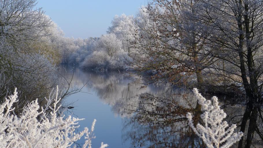 Keywords: silent landscape hoarfrost winter river frost loneliness