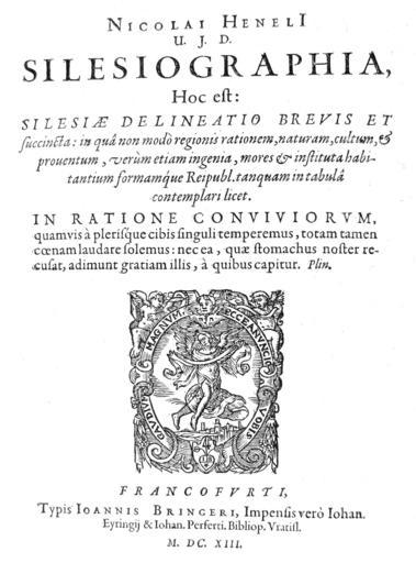 Keywords: Silesiograf1613.jpg pl Strona tytułowa Silesiographia Nikołaja Henela own St Mons 1613 Henel von Hennenfeld Uncategorized 2015 March 25
