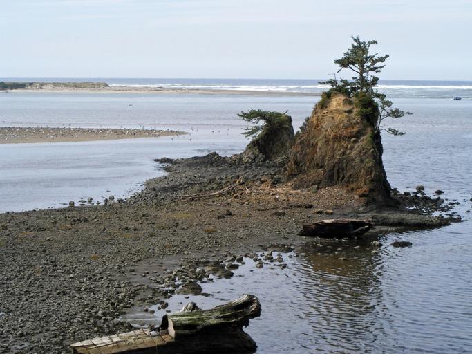 Keywords: siletz bay oregon coast pacific rock taft beach sea peaceful water tree