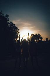 Keywords: silhouette girls dusk sunset teen teenagers friends trees