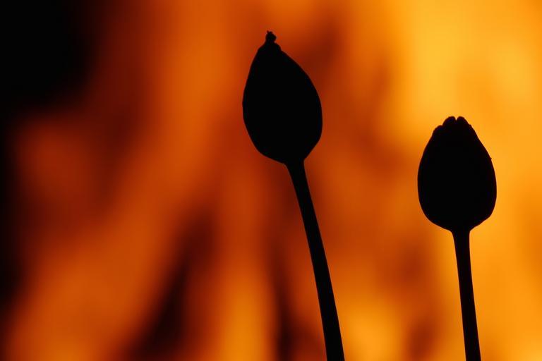 Keywords: silhouettes flowers buds plant night fire lighting burning nature floral stems