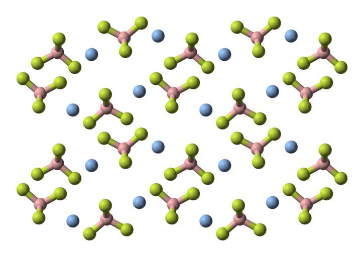 | Keywords: Silver-tetrafluoroborate-xtal-3D-balls.png Ball-and-stick model of part of the crystal structure of silver tetrafluoroborate AgBF<sub>4</sub> X-ray crystallographic data from http //dx doi org/10 1016/j solidstatesciences 2005 06 007 Solid State Sciences 2005 7 1225-1229 Model constructed in http //www crystalmaker com/ CrystalMaker 8 1 Image generated in http //accelrys com/products/discovery-studio/visualization/discovery-studio-visualizer html Accelrys DS Visualizer Own 2009-02-15 Ben Mills Benjah-bmm27 Images by Ben Mills Silver tetrafluoroborate Crystal structures in space group number 62 |