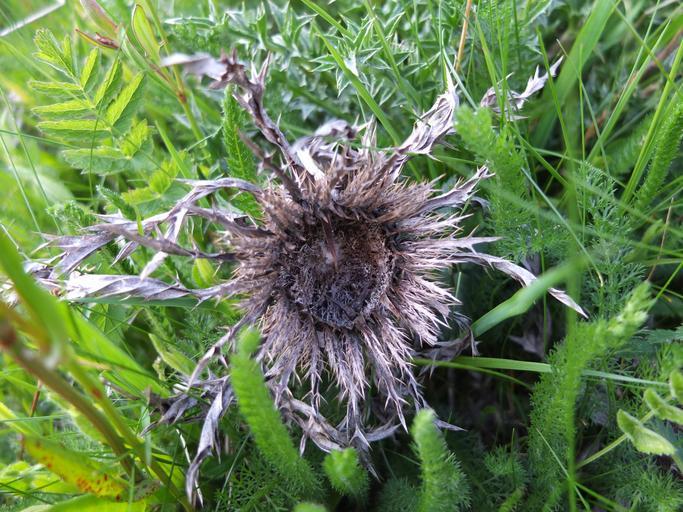 Keywords: silver thistle meadow flower old dry prickly close carlina acaulis blossom bloom thistle weather thistle silver spur
