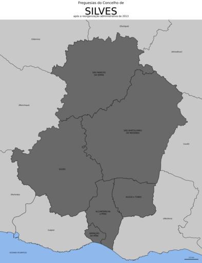 | Keywords: Silves freguesias 2013.svg pt Freguesias do concelho de Silves Portugal Fontes Diário da República Reorganização administrativa do território das freguesias Lei n º 11-A/2013 de 28 de janeiro Direcção-Geral do Território DGT Carta Administrativa Oficial de Portugal CAOP versão 2013 Continente http //www dgterritorio pt/ficheiros/cadastro/caop/caop_download/caop_2013_0/caop2013cont_zip_2 en Civil parishes in the municipality of Silves Portugal Sources Diário da República Administrative reorganization of the civil parishes' territory Law n 11-A/2013 from 28th January Direcção-Geral do Território Official Administrative Chart of Portugal CAOP version 2013 Mainland http //www dgterritorio pt/ficheiros/cadastro/caop/caop_download/caop_2013_0/caop2013cont_zip_2 2015-01-12 own Gazilion other versions cc-zero Uploaded with UploadWizard Silves SVG maps of freguesias in Portugal |