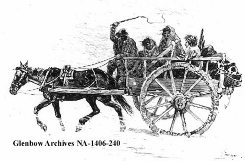 Keywords: Sinclair.jpg en Metis in Red River cart Saskatchewan 1885 http //www glenbow org/images/archpics/sinclair jpg Author 1885 Carriages in Canada PD-old Images by Albedo-ukr Red River carts