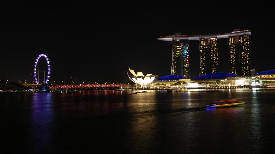 Keywords: singapore night architecture landmark marina asia water waterfront river city light evening