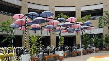 Keywords: singapore parasols courtyard restaurant summer