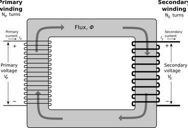 | Keywords: Single-phase transformer.svg Idealised single-phase transformer with N<sub>P</sub> turns in the primary and N<sub>S</sub> in the secondary Created with Inkscape --BillC 20 07 19 December 2005 UTC 2005-12-19 own assumed BillC Transformer schemas ImageNote 1 350 95 8 8 689 467 2 the unit of fyie is wb and the unit of Bm is wb/m2 ImageNoteEnd 1 |