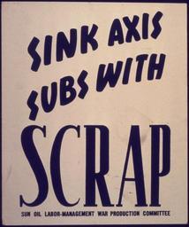 Keywords: Sink Axis Subs With Scrap - NARA - 533956.jpg Scope and content General notes 533956 Local identifier 179-WP-98 Office for Emergency Management War Production Board 01/1942 - 11/03/1945 Still Picture Records Section Special Media Archives Services Division NWCS-S National Archives at College Park 8601 Adelphi Road College Park MD 20740-6001 other date circa 1942 1943 Record group Record Group 179 Records of the War Production Board 1918 - 1947 Record group ARC 508 War Production Board compiled 1942 - 1943 Series ARC 533858 File unit File unit ARC Variant control numbers NAIL Control Number NWDNS-179-WP-98 Other versions <gallery> File Sink_Axis_Subs_With_Scrap_-_NARA_-_533956 tif tif File Sink_Axis_Subs_With_Scrap_-_NARA_-_533956 jpg jpg </gallery> NARA-cooperation PD-USGov World War II posters from the United States Scrap metal drives Labor Management Committees |