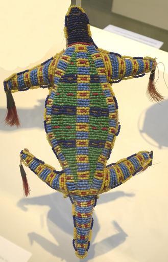 | Keywords: Sioux amulet in the form of a lizard, Honolulu Museum of Art 4935.1.JPG en Amulet in the form of a lizard Sioux people Great Plains United States 20th century tanned deer hide beads tin horse hair and cotton with hand stiching and bead work Honolulu Museum of Art accession 4935 1 own Hiart photo 2015 Native American art in the Honolulu Museum of Art Native American beadwork Sioux artefacts Amulets Lizards in art Cc-zero | ||||