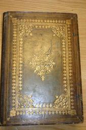 | Keywords: -Sir Julius Caesar's travelling library, individual parchment covered books and container, made to resemble a leather bound book. A restricted item.- - Upper cover (c20f15-58).jpg Style Centre and cornerpiece made of small tools; Caption Upper cover; Colour Green; Edge Gilt gauffered and painted exhibition history Decorative Technique Tooled in gold; Cover Material Goatskin includes morocco turkey etc Sir Julius Caesar's Travelling Library The contents of the box which is made to look like a book are small gold tooled vellum editions of the classics etc and can be called up to the Rare Books Music Reading Room The box which contains them is fragile and cannot be issued object history Text 17c; Unspecified; Unspecified object type Cc-zero place of creation Binding England place of discovery See H M Nixon and M M Foot The History of Decorated Bookbinding in England Oxford 1992 p 49 British Library image http //www bl uk/catalogues/bookbindings/LargeImage aspx RecordId 020-000012214 ImageId ImageId 45712 Copyright BL Sir Julius Caesar's travelling library individual parchment covered books and container made to resemble a leather bound book A restricted item Uploaded with GWToolset Sir Julius Caesar's travelling library individual parchment covered books and container made to resemble a leather bound book A restricted item - Upper cover c20f15-58 http //www webarchive org uk/bldatasets/bindings/13196_3 jpg Bookbinding 17th-century bookbinding British Library Bookbindings |