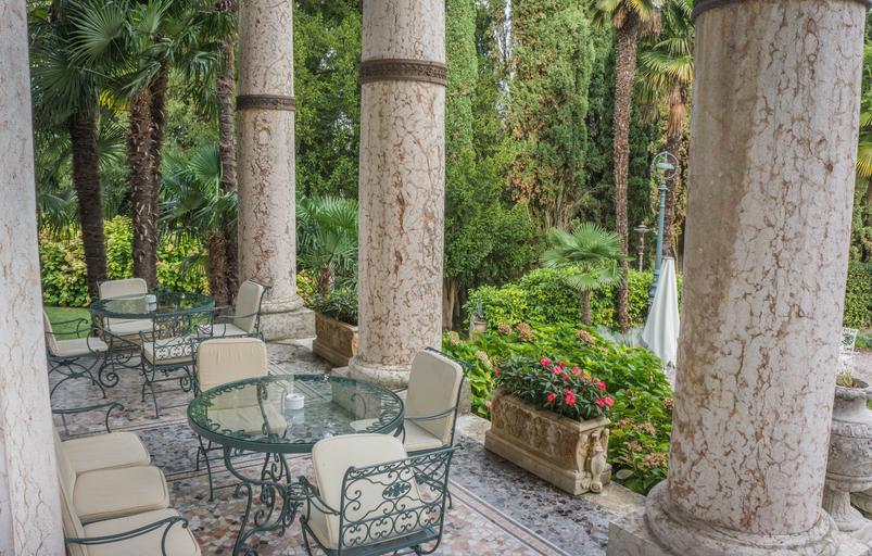 Keywords: sirmione villa cortine palace lake garda dining area garden nature resort table chair summer green plant luxury landscape sunny outdoor lifestyle flowers