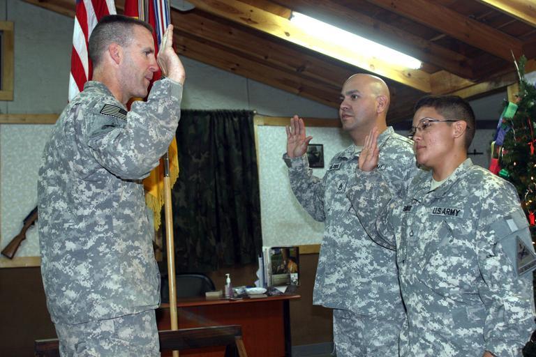 Keywords: Sister, brother reenlist at Camp Striker DVIDS134952.jpg en Siblings Pfc Marlene Banuelos and Staff Sgt Normando Gallardo both of whom are natives of El Paso Texas raise their right hands as each swears to serve for another six years in the U S Army Banuelos serves with Headquarters Headquarters Company 2nd Brigade Combat Team 1st Armored Division Multi-National Division “ Baghdad and Gallardo serves with Company A 40th Electronic Signal Brigade in Balad Administering the oath is Col Pat White a native of Apple Valley Calif who is the commander of the 2nd BCT 1st Armd Div 2008-12-10 Staff Sgt Scott Wolfe https //www dvidshub net/image/134952 134952 2008-12-10 09 45 BAGHDAD IQ PD-USGov 1st Armored Division United States People of El Paso Texas Camp Striker Images from DoD uploaded by Fæ |