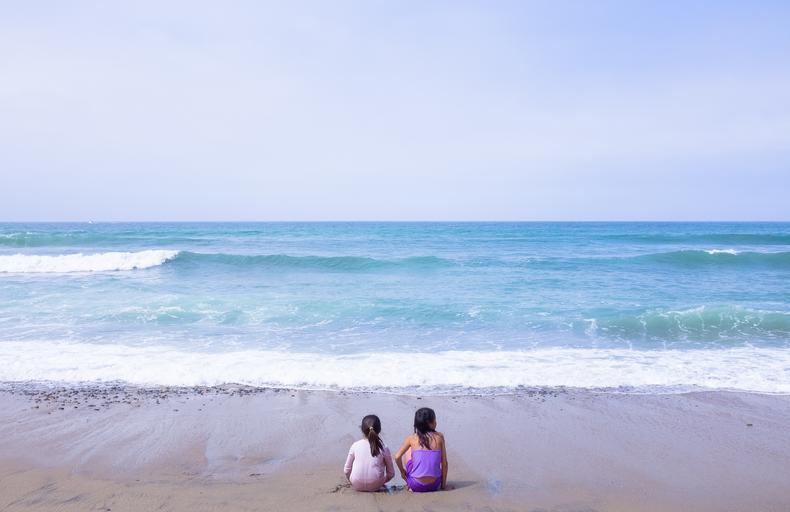 Keywords: sisters girls beach water children playing