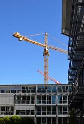 Keywords: site crane scaffolding building construction action free sky noise pollution urban planning