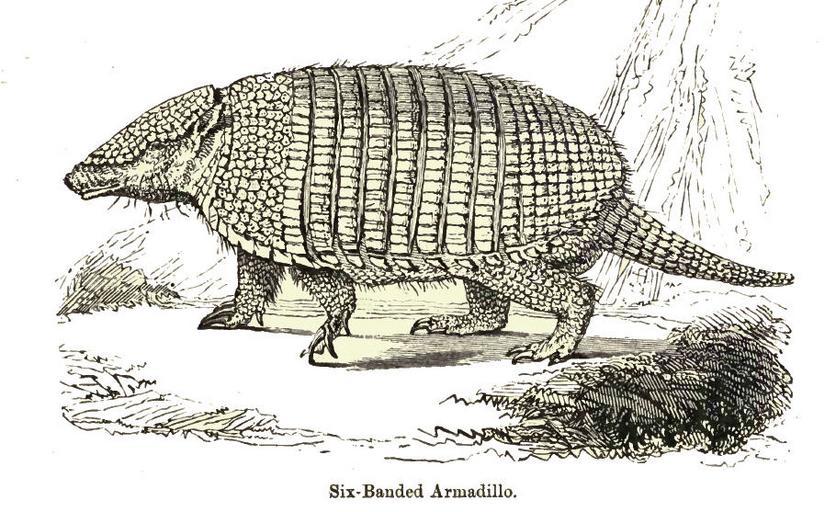 Keywords: SixBandArmadilloLyd.jpg Six banded Armadillo Euphractus sexcinctus Life and Rocks 1894 Creator Richard Lydekker pd-old PD-old Richard Lydekker