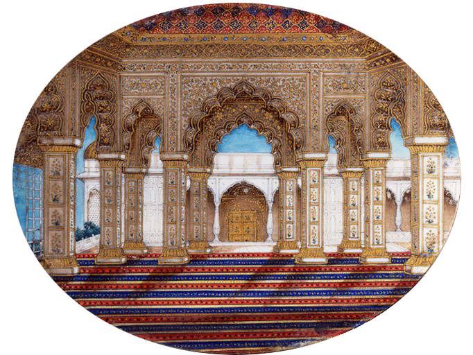 Keywords: Sixteen views of monuments in Delhi Diwan-i-Khas Red Fort Delhi 1850.png This painting depicts the interior of the Diwan-i Khas Delhi One of Sixteen views of monuments in Delhi Agra Amritsar Lucknow and South India This painting was transferred from the India museum 1879 Watercolour on ivory Victoria and Albert Museum number 03568 IS Length 5 cm Width 4 5 cm http //collections vam ac uk/item/O432293/one-of-sixteen-views-of-painting-unknown/ circa 1850 made author 100px Same view with the Stream of Paradise uncovered around 1843 PD-old-100 Diwan-i-Khas Red Fort Mughal art in the Victoria and Albert Museum Red Fort in art |