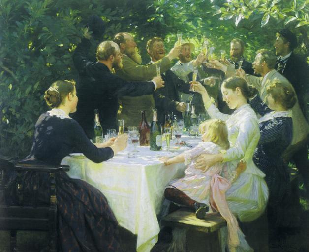 Keywords: Skagen Künstlerfest 01.jpg Artwork Creator Peder Severin Krøyer Hipp hipp hurra Kunstnerfest på Skagen de Hip hip hurra - Künstlerfest in Skagen 1888 oil canvas cm 134 5 165 5 Göteborgs konstmuseum The colony of painters who worked in Skagen Denmark have gathered in a garden for a celebration From left to right Martha Johansen painter Viggo Johansen Norwegian painter Christian Krohg P S Krøyer Degn Brøndum Anna Ancher's brother Michael Ancher Swedish painter Oscar Björck Danish painter Thorvald Niss teacher Helene Christensen Danish painter Anna Ancher and Helga Ancher Other versions <gallery> File Hipp hipp hurra Konstnärsfest på Skagen - Peder Severin Krøyer jpg File PS Krøyer - Hip hip hurra Kunstnerfest på Skagen 1888 jpg </gallery> PD-old-100 ImageNote 1 1856 497 424 534 4920 4012 2 Christian Krohg ImageNoteEnd 1 ImageNote 2 2358 570 329 439 4920 4012 2 P S Krøyer ImageNoteEnd 2 Women drinking Paintings by Peder Severin Krøyer in Skagens Museum Sparkling wine Toasting in art People sitting at tables in art Wine in art Wine tasting Self-portraits in group People with beverages in art Skagen Painters Portraits of Christian Krohg Self-portraits by P S Krøyer Portraits of Michael Ancher Portraits of Anna Ancher Oscar Björck |
