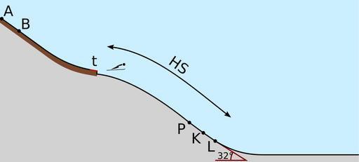 Keywords: Ski jumping hill profile.svg fr <br /> A point supérieur du départ<br /> B point inférieur du départ<br /> t table<br /> P début de la zone d ™atterrissage<br /> K point de construction<br /> L fin de la zone d ™atterrissage<br /> HS taille du tremplin hill size 2013-03-23 17 55 58 own Florn88 cc-zero Uploaded with UploadWizard Ski jumping hills |