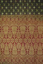 Keywords: Skirt cloth (sarong), Terengganu, Malaysia, view 2, late 19th century, silk, gold thread - Textile Museum of Canada - DSC01006.JPG en Exhibit in the Textile Museum of Canada 55 Centre Avenue Toronto Ontario Canada Photography was permitted in the museum without restriction 2013-07-04 14 25 04 own Daderot cc-zero Textiles in the Textile Museum of Canada Uploaded with UploadWizard Textiles of Malaysia |