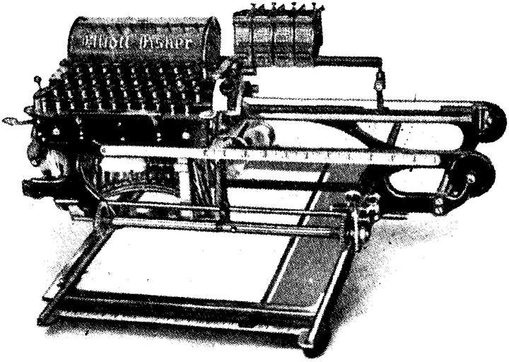 | Keywords: Skrifmaskin, Elliot-Fishers maskin för skrifning i bok, Nordisk familjebok.png Elliot-Fisher book typewriter made by the Elliott-Fisher Co around 1903 Invented by the Elliot-Hatch Co around 1897 book typewriters typed on bound books that lay flat when opened with a moving carriage suspended over the surface They were used to enter information in bookkeeping ledgers property deed books and other government and business record books and to type letters while simultaneously printing carbon copies in a copy book For more information see http //www officemuseum com/typewriters_office_special htm Antique special purpose office typewriters Early Office Museum http //runeberg org/nfce/0634 html Nordisk familjebok Uggleupplagan 26 Slöke - Stockholm 1917 Public domain CleanFFT PD-Ugglan Typewriters in art |
