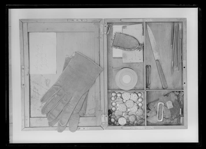 | Keywords: Skrivschatull - Livrustkammaren - 43365.tif Rektangulärt schatull av mahogny något rundade hörn och kanter På bottnens undersida en skiva av annat träslag klädd på undersidan med starkt slitet delvis uppätet grönt ylletyg Lås av mässing två låstappar med genomgående hål liggande rombisk nyckelskylt av mässing Två gångjärn av mässing en skruv saknas på båda gångjärnen i underdelen På lockets bakkant två mässingsskodda hål<br/><br/>Locket fixerbart i tre lägen med mässingsstavar infällda i underdelens smalsidor skoningar med tre urtag på lockets kanter Locket invändigt förstärkt längs kanterna med mahognyribbor <br/><br/>Underdelen indelad i fyra fack med fyra mahognylister h 30 mm rundade överkanter <br/><br/>I schatullet ligger två papperslappar den ena med bläckpåskrift tysk stil Aus dem Nachlasse // Sr Majestät des Königs // Gustav IV på den andra blyertspåskrift Inderberg Lagerberg <br/><br/>Tillbehör <br/>Nyckel l 35 mm b 21 mm ovalt invändigt 8-formigt grepp pipa med två vulster axet saknas original caption - 1810 1837 mahogany - brass - woollen Färg grön material ylle g 1860 size mm 372 279 64 LRK Carola Carolina av Sachsen drottning Gustav IV Adolf av Sverige Gustav Vasa tur och retur Gustav IV Adolf i S t Gallen 1993 Gustav IV Adolfs kröning 2000 1809 - Rikssprängning och begynnelse 200-årsminnet av finska kriget 2008-2009 Stockholm place of origin original filename LN_B02745_005625 46753 inventory number LRK 10277 43365 CC0 Skrivschatull - Livrustkammaren - 43365-negative tif <gallery caption Different images of same object > File Skrivschatull - Livrustkammaren - 60408 tif File Skrivschatull - Livrustkammaren - 85250 tif </gallery> Office equipment Media contributed by LSH 2013-10 |