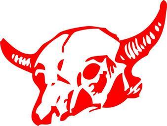 Keywords: skull bull cow bovine head red drawing horns bones dead death skeleton