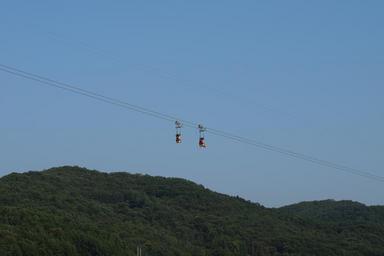 Keywords: sky blue mountain man lift island connection cable high