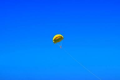 Keywords: sky blue parachute yellow