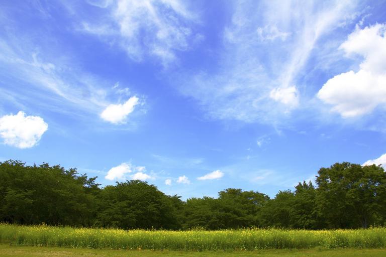Keywords: sky blue trees forest woods grass field meadow clouds horizon rural tranquil scenery idyllic outdoors park