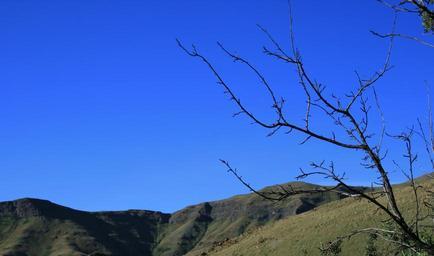 Keywords: sky bright clear pure blue mountain tops slopes dry branches