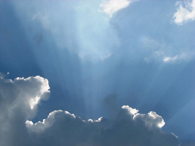 Keywords: sky cloud blue clouds form sunbeam white grey