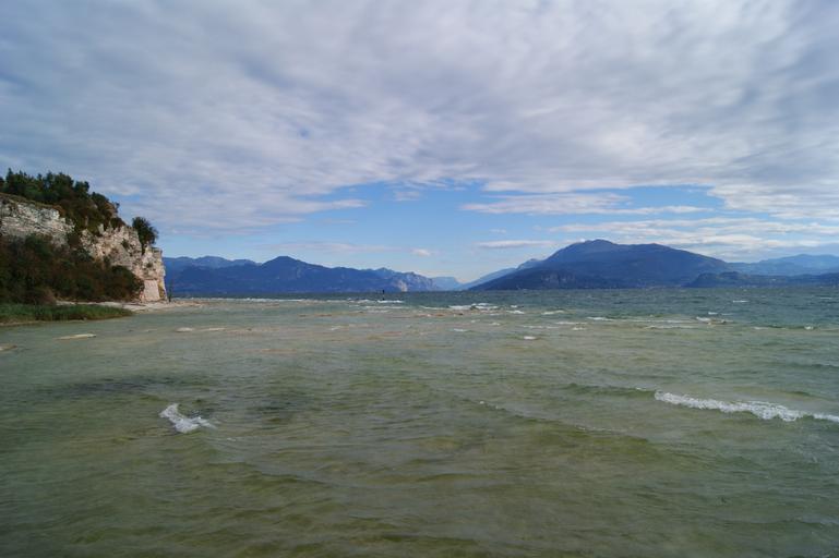 Keywords: sky clouds lake mountains sirmione the waves windy