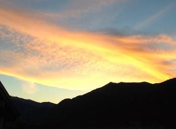 Keywords: sky red sunset sun landscape rays of sunshine nature atmosphere twilight mountain water clouds burning sky mountains horizon evening