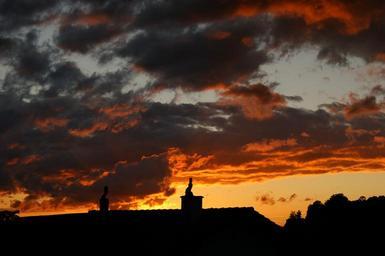Keywords: sky sunset clouds abendstimmung romance sun blue spotlight yellow red orange home chimney roof