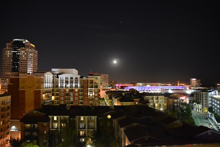 Keywords: skyline moon city night cityscape architecture downtown city skyline illuminated skyscraper tower evening los angeles l a sky twilight california dusk