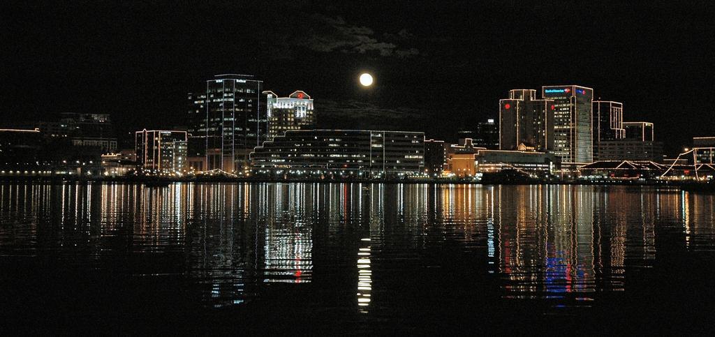 Keywords: skyline night full moon cityscape portsmouth virginia elizabeth river port urban water reflection dark landscape metropolitan harbor usa