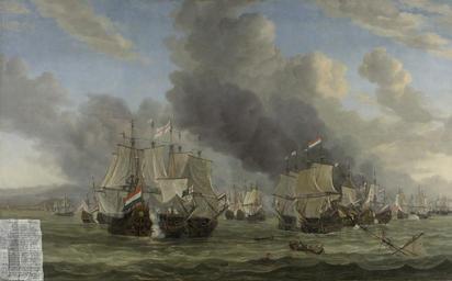 Keywords: Slag bij Livorno Rijksmuseum SK-A-294.jpeg accession number SK-A-294 Creator Reinier Nooms credit line nl De zeeslag bij Livorno op 14 maart 1653 tussen de Nederlandse vloot onder bevel van Jan van Galen en de Engelse vloot onder Sir Appleton Op de voorgrond de mast van een gezonken schip en zeelieden in een sloep en in het water Boven de schepen donkere rookwolken Links in de verte de kust bij Livorno ; Reinier Nooms genaamd Zeeman 1623/24 “1664 olieverf op doek 1653 “1664 drager Height cm 142 drager Width cm 225 exhibition history 2012-2012 Amsterdam Istanbul-II Amsterdam 2012-2012 Amsterdam Istanbul-II Amsterdam 2012-2012 Amsterdam Istanbul - I Istanbul 2009-2010 Vermeer Rembrandt and the golden Age of Dutch Art Masterpieces from the Rijksmuseum Amsterdam - 3 Paris 2009-2009 Vermeer Rembrandt and the golden Age of Dutch Art Masterpieces from the Rijksmuseum Amsterdam Vancouver Canada Institution Rijksmuseum Technique oil canvas object history Acquisition 1800 object type Potential derivatives exist check http //commons wikimedia org/w/index php search Rijksmuseum+SK-A-294 this search PD-US PD-old Data and photography rights All data and all images made available through the API are either in the public domain or are subject to a CC0 license https //www rijksmuseum nl/en/api/terms-and-conditions-of-use cc-zero place of creation P Sigmond 'Collectie Zeeslagen en zeehelden in de Gouden Eeuw Maritieme geschiedenis in het De Ruyterjaar' Rijksmuseum Kunstkrant 33 2007 2 p 5-8 afb Documentatiemap Schilderijen aantekeningen R van Luttervelt voor 1963 http //www rijksmuseum nl/collectie/SK-A-294 Slag bij Livorno Q17320043 Uploaded with GWToolset Slag bij Livorno Rijksmuseum SK-A-294 http //www rijksmuseum nl/media/assets/SK-A-294 Images uploaded by Fæ Images from the Rijksmuseum Paintings by Reinier Nooms in the Rijksmuseum Amsterdam Reinier Nooms |